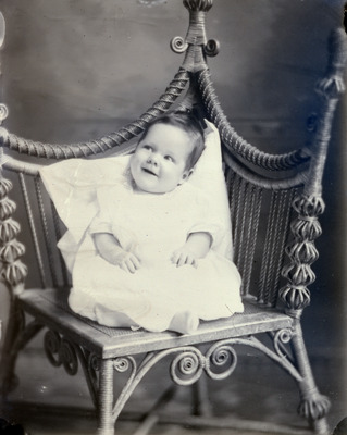 Infants-- Portraits -- 1910-1920 -- Stafford County (Kan.), Clothing and dress, wicker furniture, Mrs. Joe Whitely