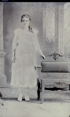 Women -- Portraits -- 1910-1920 -- Stafford County (Kan.), Clothing and dress, wooden furniture, Ova Fergus