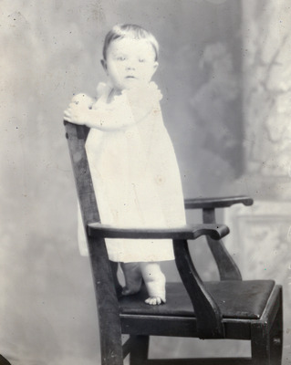 Infants -- Children -- Portraits -- 1920-1930 -- Stafford County (Kan.), Clothing and dress, wooden furniture, Mrs. Jess Rixon