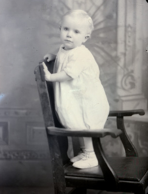 Infants -- Children -- Portraits -- 1920-1930 -- Macksville, Stafford County (Kan.), Clothing and dress, wooden furniture, R.H. Partridge