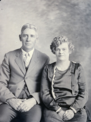 Portraits -- Couples -- Men -- Women -- 1920-1930 -- Stafford County (Kan.), Clothing and dress. Silas Eidson and wife