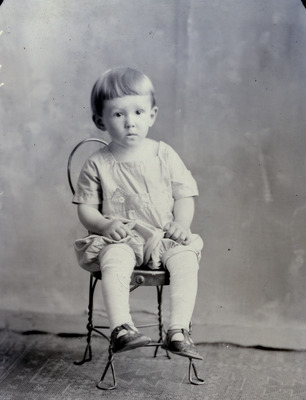 Portraits -- Children -- Boys -- 1920-1930 -- Stafford County (Kan), Clothing and dress, ice cream parlor chair. D.F. Burch