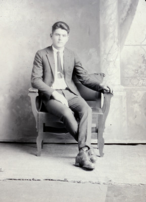 Portraits -- Men -- 1920-1930 -- Noble, Missouri, Clothing and dress, wooden furniture, Joe Piland