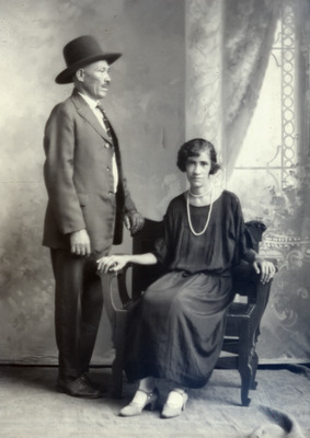 Portraits -- Hispanic Women -- Hispanic Men -- Couples -- 1920-1930 -- Stafford County (Kan.), Clothing and dress, wooden furniture, Antonio Paris