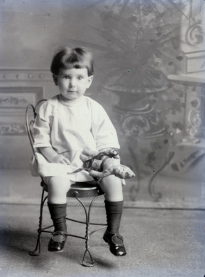Portraits -- Children -- 1920-1930 -- Stafford County (Kan.), Clothing and dress, ice cream parlor chair, toys, Mrs. Ruth Branham